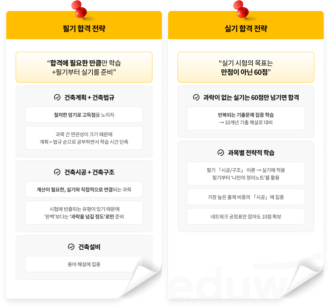 에듀윌 건축 베테랑 교수진은 빠른 합격을 위해 1·2차 연계 학습을 제시합니다
