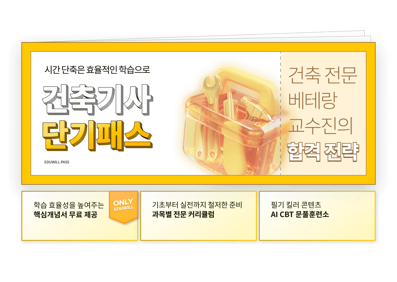 건축 전문 교수진의 단기 합격 커리큘럼 에듀윌 건축기사 단기패스를 직접 확인하세요